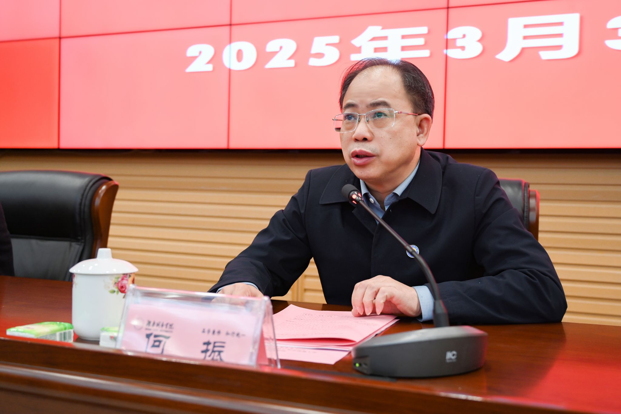 何振对深入贯彻中央八项规定精神学习教育和2025年全面从严治党工作进行了部署。他指出,2025年学校要以学习贯彻中央八项规定精神为抓手,推进全面从严治党向纵深发展。一是要对标中央和省委决策部署抓贯彻落实。强化安全稳定主体责任,定期开展安全隐患排查,加强校园安全管理,维护校园的和谐稳定;二是要聚焦重点领域抓贯彻落实紧盯“校园餐”强监管、抓整治,紧盯基建招标强监管、抓整治,紧盯继续教育强监管、抓整治,紧盯招生考试强监管、抓整治;三是要坚持一严到底抓贯彻落实。持续加强师德师风教育,严把教师“入口关”,开展师德师风专题教育,压实学校“第一责任人”责任;四是要坚持以案促改筑牢防腐堤坝推进党纪学习教育常态化长效化,把纪律教育和党性教育、清廉文化教育等贯通起来,把正面引导和反面警示结合起来,抓实“以案说纪以案促改”。