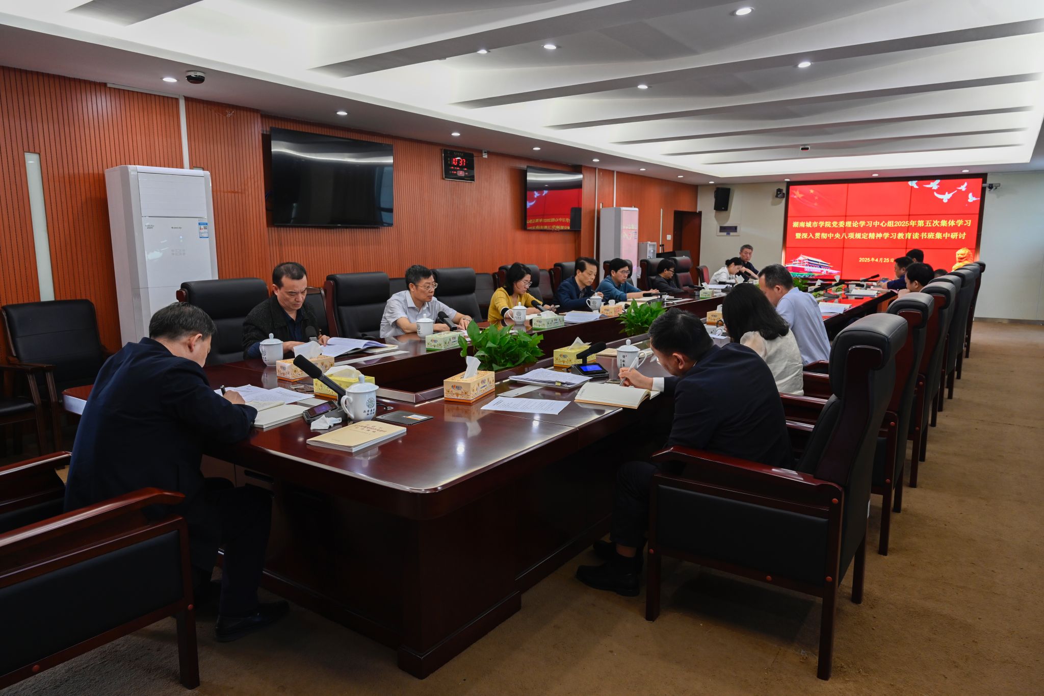 本网讯(通讯员 蔡润晨)4月25日,学校在办公楼一会议室举行党委理论学习中心组2025年第五次集体学习暨深入贯彻中央八项规定精神学习教育读书班集中研讨。党委副书记、校长何振主持会议。