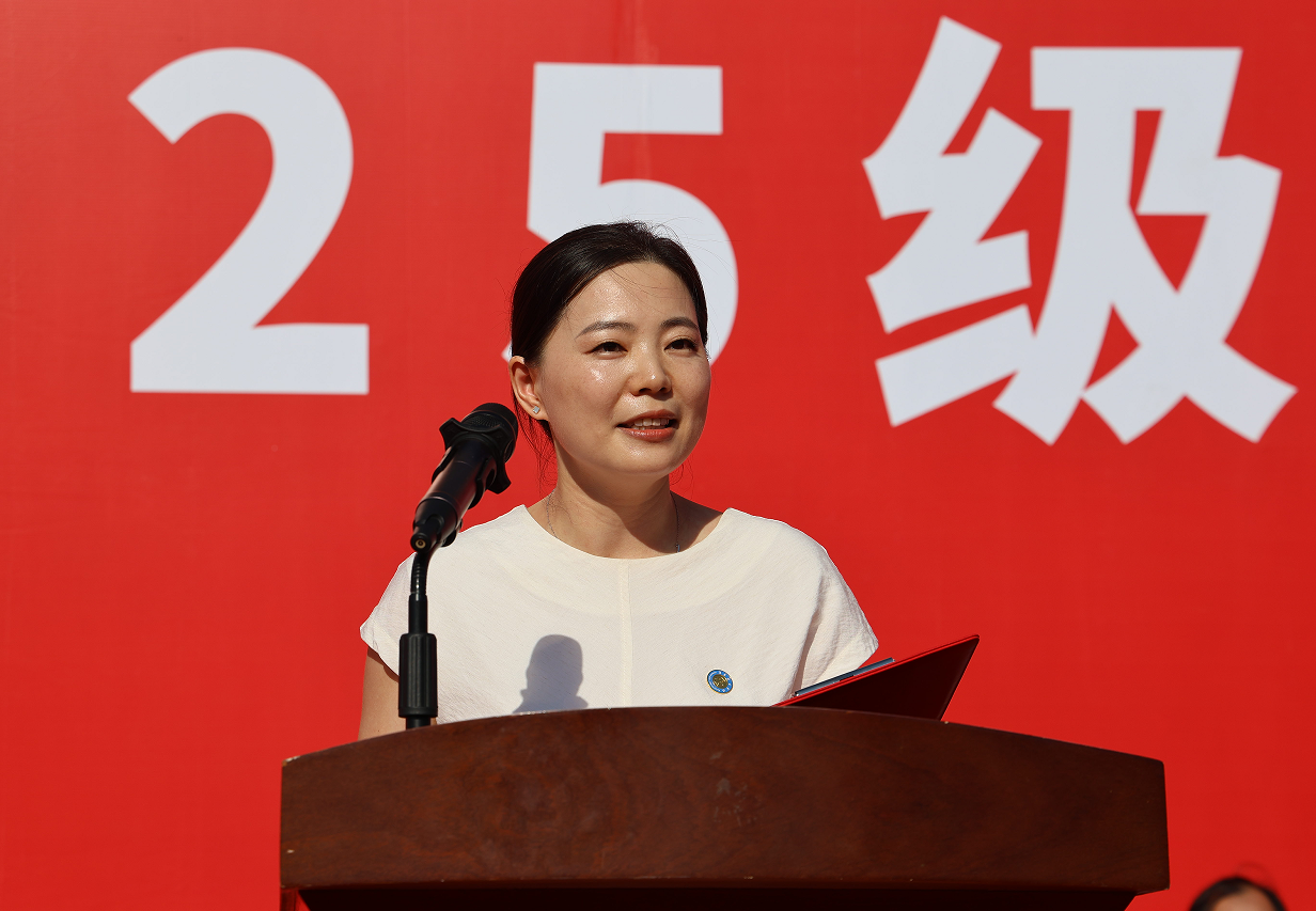 校友代表、人文学院1997级汉语言文学专业校友、湖南省麓山强制戒毒所党委书记、所长赵智深情回顾了在城院学习期间的校园生活,他勉励新生,每一寸土地都将见证大家的努力与成长,要铭记“品学兼修,知行统一”的校训,只争朝夕,不负韶华,让奋斗与时代浪潮同频共振,与民族复兴同向同行,做无愧于时代的新时代城院人。