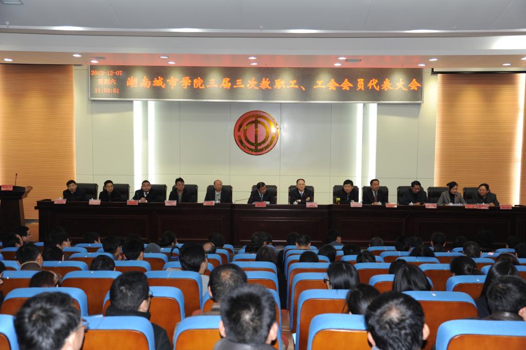 (本网讯)12月7日8点30分,我校三届三次教职工、工会会员代表大会在校本部逸夫图书馆报告厅举行。大会在雄壮的国歌声中拉开序幕,纪委书记、校工会主席杨斌主持会议,校长李建华致开幕词,出席本次会议的有“双代会”正式代表154人、特邀代表15人、列席代表10人。