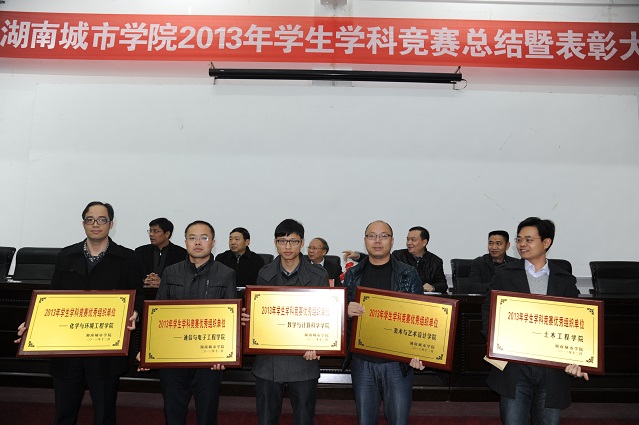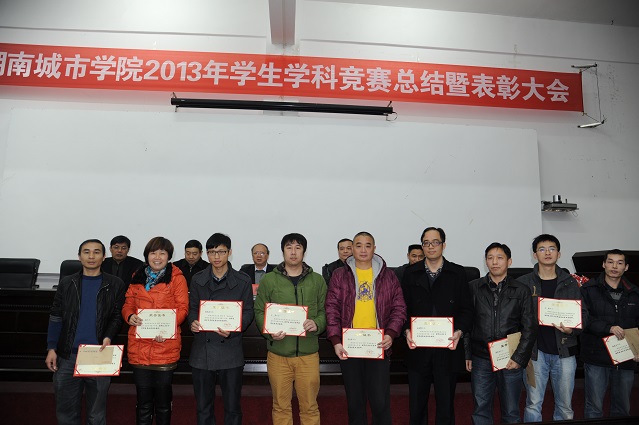教务处副处长文明才在会上总结了我校学科竞赛参与情况。2013年,学校在全国、湖南省各类学科竞赛中取得了优异成绩,成功承办了“湖南省第二届大学生结构设计竞赛”和“湖南省第十届高校优秀设计作品展”。全年参加了全国电子设计竞赛等21大项目竞赛,有5个项目竞赛成绩取得了重大突破,共获奖191项。其中国家级一等奖2项、二等奖2项、三等奖1项;省级一等奖11项、二等奖43项、三等奖46项;其他86项,为学校赢得了良好的声誉。