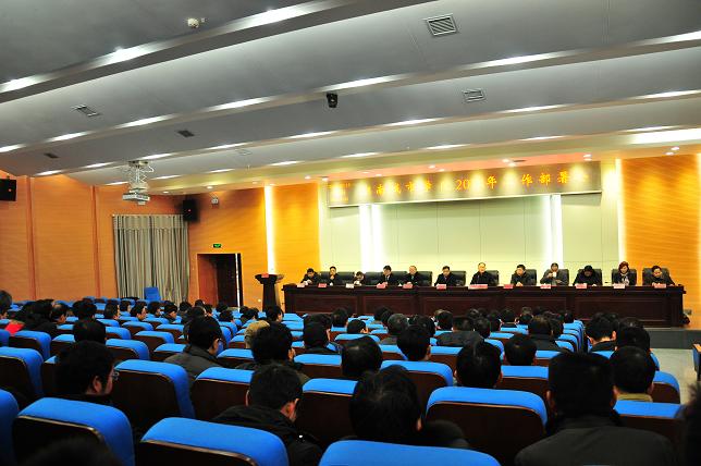 (本网讯) 2 月16 上午,学校在逸夫图书馆报告厅举行开学工作会议,对本学期重点工作进行部署。全体校领导和副处级以上干部出席会议。会议由党委书记赵运林主持。