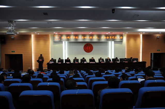 (本网讯)3月1日,我校三届四次教职工工会会员代表大会在校本部逸夫图书馆报告厅隆重举行。来自各二级学院、机关处室的正式代表181人、列席代表10人、特邀代表16人出席了会议。