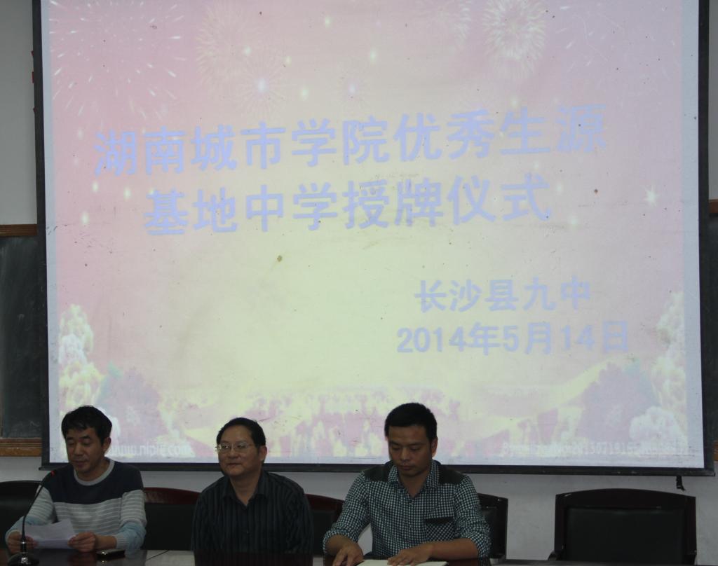 (本网讯)为进一步巩固和加强优秀生源基地建设,加强我校与县级以上重点中学的联系与合作,吸引更多优秀生源,5月15日上午,我校正校级督导范志超以及招生就业处相关负责人一行5人赴长沙县第一中学、第九中学签署了《华体网页版优秀生源基地协议书》,并向优秀生源基地负责人授牌。