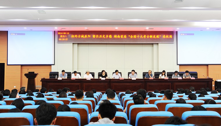 (本网讯)6月14日上午,由湖南省文物局、益阳市人民政府、中国文物报社和我校联合主办,益阳市文化广电新闻出版局、共青团华体网页版委员会、三湘都市报、华声在线、湖南省文物考古研究所联合承办的湖南首届全国十大考古新发现进校园——“相约古城益阳留住历史乡愁” 活动在我校图书馆报告厅举行。