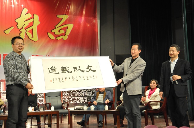 活动在臧远科校友向文学院赠送亲笔书法卷轴的仪式中落下帷幕。(郭霞)