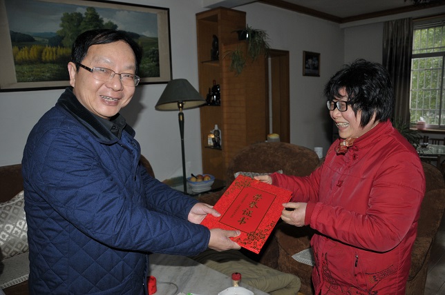 (本网讯)“感谢您为学校的改革发展作出的重要贡献,祝您身体健康,生活愉快!” 1月23日至28日,党委书记李建华、校长李建奇、副校长郑卫民在离退休处、工会负责人陪同下分别走访了部分离退休教师和重病、特困教职工,代表学校党委、行政向他们致以节日问候和良好祝愿。