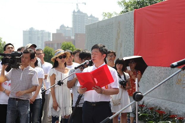 李建华发表讲话,他指出,建设《道德经》文化石墙,是在习近平同志为总书记的党中央大力倡导培育和践行社会主义核心价值观,用中华优秀传统文化育人的大背景下,学校党委经过慎重思考、科学论证以后做出的决策。建设《道德经》文化石墙,并以此为主体建设道德经文化园, 意义重大,一是有利于形成校园文化特色,提升校园文化品位,打造校园文化精品,实现文化育人;二是有利于更好地实施大学生道德素质提升工程,提高大学生思想道德素养;三是有利于提供开展社会主义核心价值观教育和爱国主义教育的有形载体,提高教育的实效性;四是有利于营造贴近经典,学习经典,弘扬传统的良好氛围,达到经典养心、潜移默化、立德修身的目的。