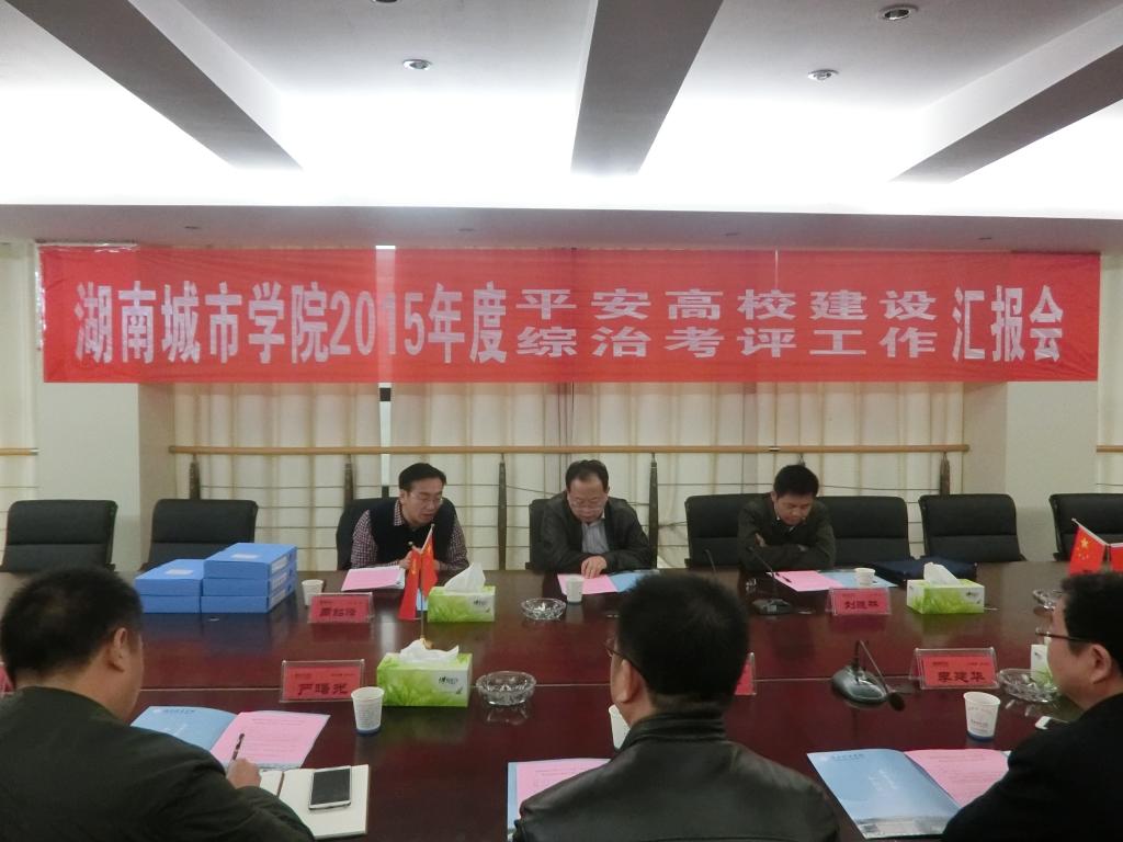 校长李建奇向考评组详细汇报了华体网页版2015年度“平安高校”建设及综合治理工作,以及学校在维稳综治安全工作中的做法和措施。他在汇报中着重指出,2015年学校维稳综治安全工作主要以“平安高校”建设为载体,以创新工作方式为手段,专注做好维稳、消防、治安等基础工作。与此同时,学校还深入开展了突发事件处置、校园传销整顿、校园交通整治等重点工作,为学校创造良好的育人环境,也为教育事业的持续健康发展提供了保障。