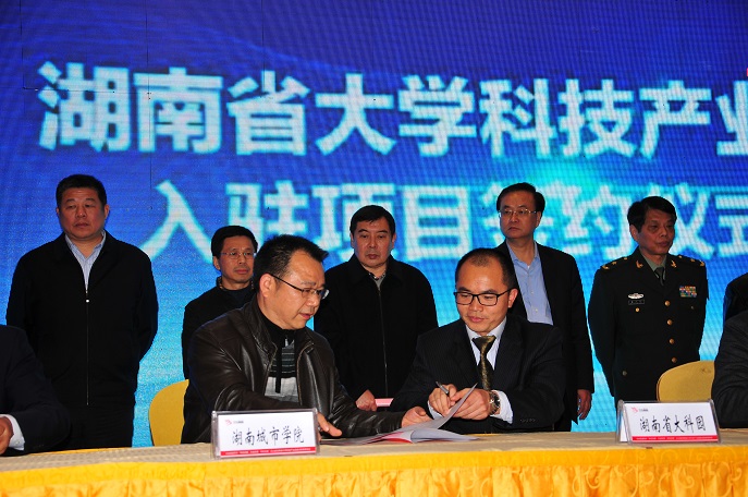 会议现场,我校以及湖南中大新能源工业技术研究院、湖南华越锂能科技实业有限公司、武汉科技大学战略合作等8个项目与湖南省大学科技产业园正式签约。