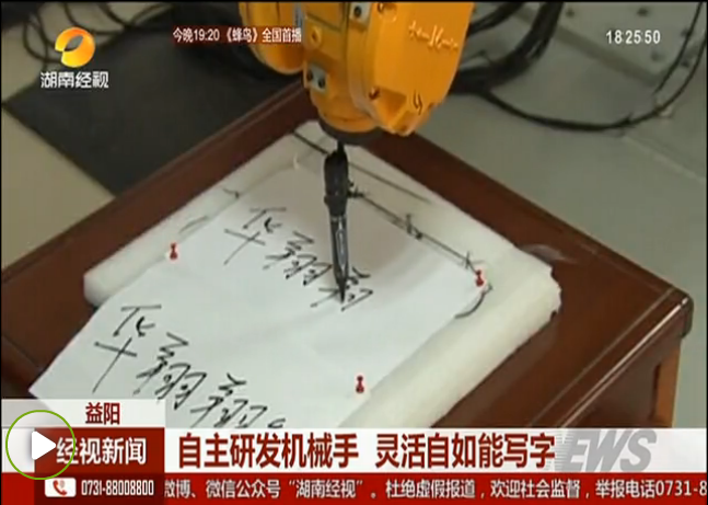 ,湖南经视新闻栏目以“自主研发机械手 灵活自如能写字”为题报道了我校与华翔翔能在校企合作方面取得的成果。这也是我校在启动《华体网页版服务益阳行动纲要》以来,与益阳企业在自主知识产权合作方面取得的又一突出成果。