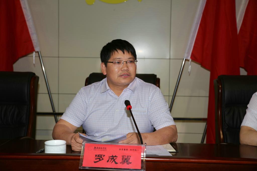 罗成翼强调,要强化领导、周密部署,确保“两学一做”学习教育和学校重点工作扎实推进。首先要坚持领导带头,特别是学校各级党组织一定要高度重视,加强领导,把学习教育抓严抓实,抓出成效。他表示学校新的领导班子将率先垂范,以“严守政治纪律和政治规矩”、“遵守民主集中制规定和议事纪律”、“履职尽责,担当作为”、“五湖四海,不搞小圈子”、“不接受下属单位吃请”、“公道正派、廉洁自律”等为自我约束,向全校干部作出表率,自觉做“两学一做”学习教育的组织者、推动者和示范者。其次要坚持从严要求,特别是要把讲党课、学习讨论、专题民主生活会和组织生活会、民主评议党员、整改落实这五个“关键动作”抓细抓实抓到位,真正从思想上、工作上、作风上严起来、实起来。 第三,要坚持问题导向,全体党员都要对照党员标准,围绕“五查摆五强化”,深刻查摆剖析,自觉检身正己。第四要坚持转变作风,以“两学一做”推进机关作风建设,推进师德师风建设,推进党风廉政建设。
