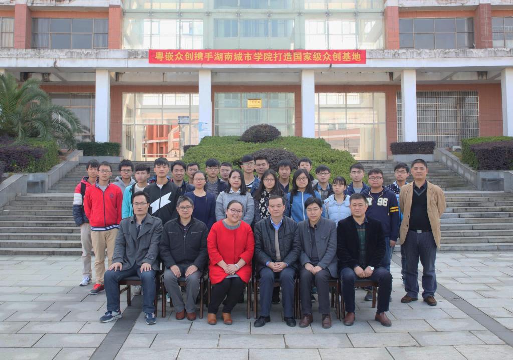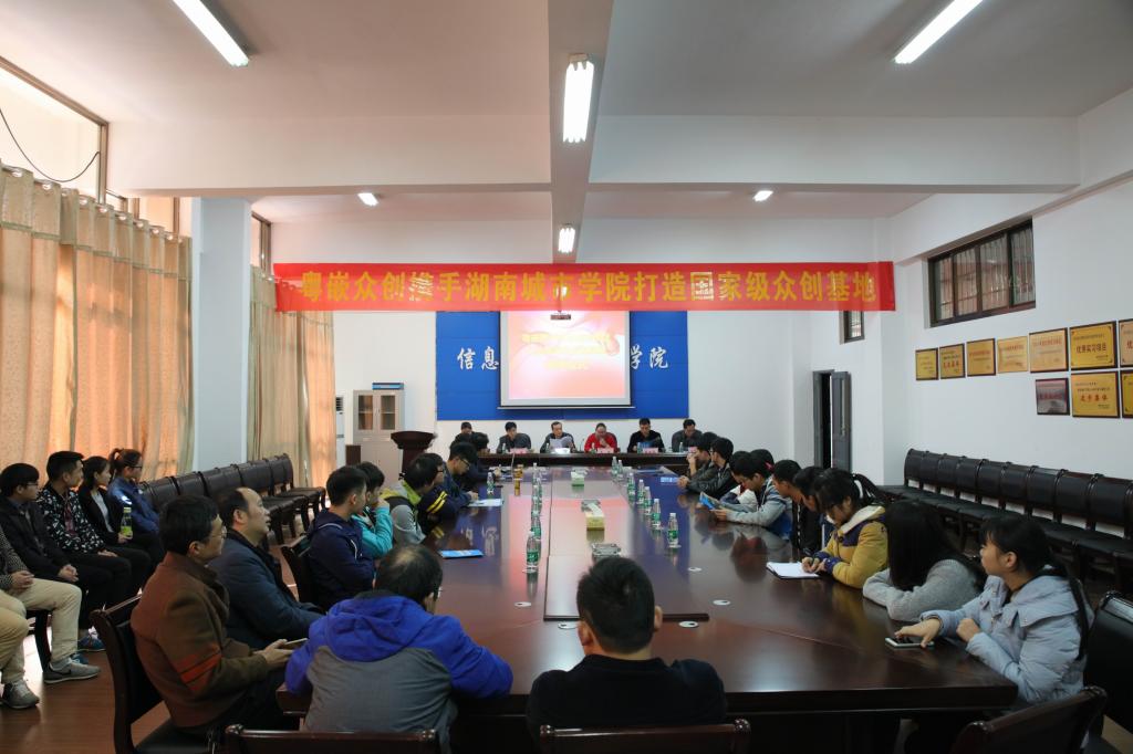 (本网讯)2016年11月11日上午10时,粤嵌众创携手华体网页版打造的国家级众创基地揭牌仪式在信息楼326会议室隆重举行。副校长雷存喜,教务处负责人,信息科学与工程学院党政班子成员,粤嵌股份湖南分公司总经理朱容、技术部总监周龙、运营总监常红英,信息科学与工程学院教师代表及学生代表参加了此次揭牌仪式。