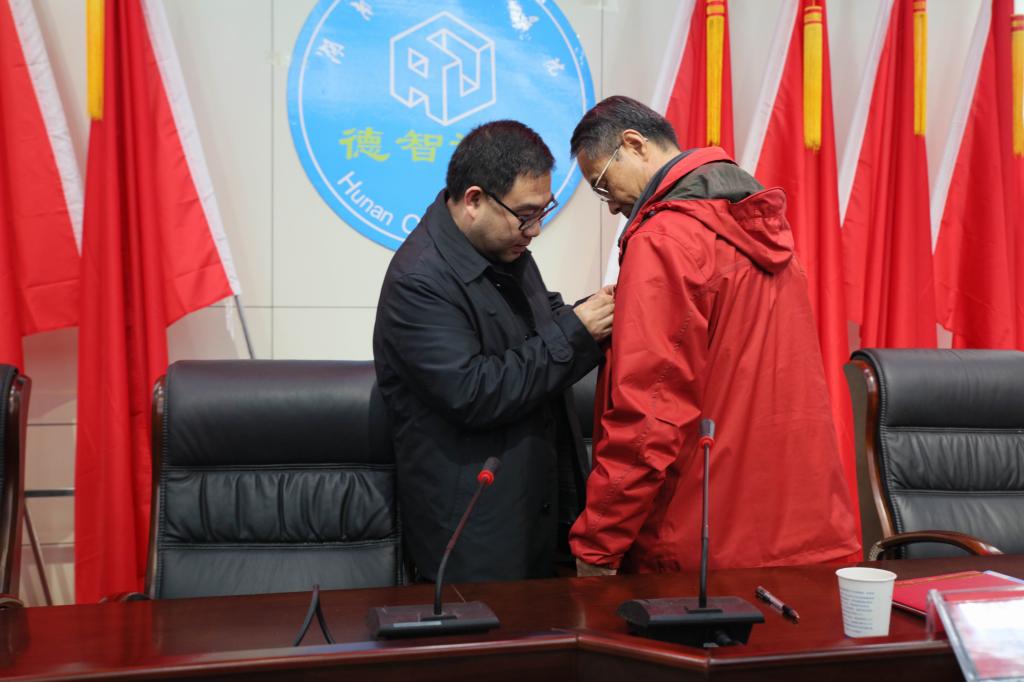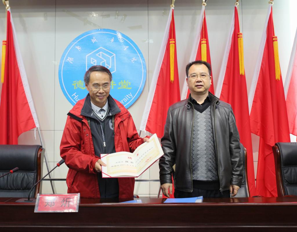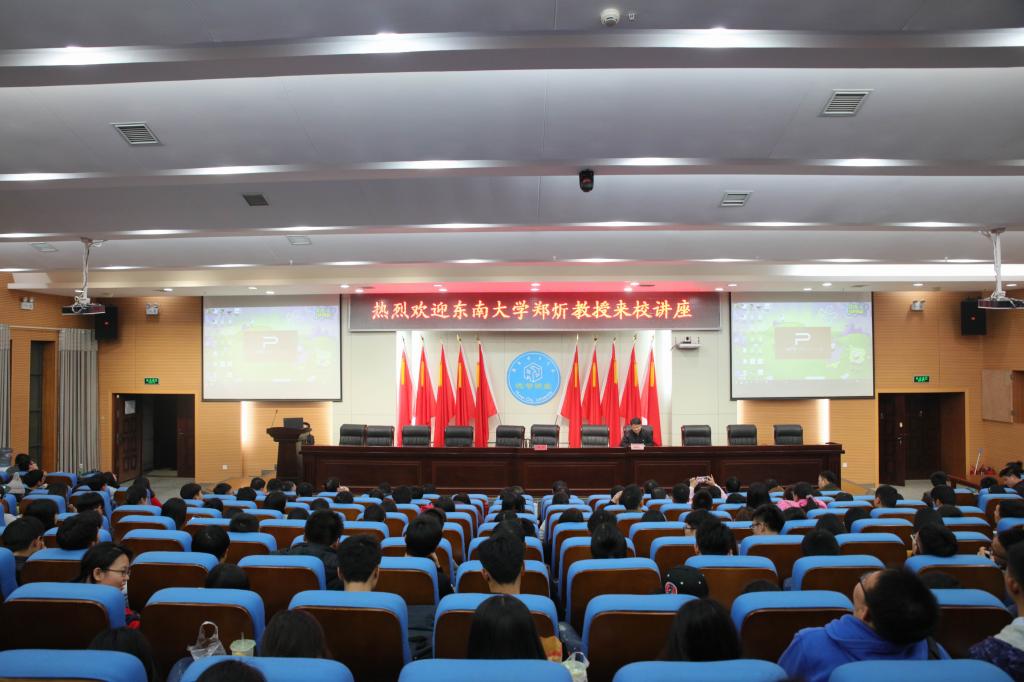 讲座之前,李建奇为郑炘教授授聘书,聘任郑炘教授为我校客座教授。郑卫民为郑炘教授佩戴了华体网页版校徽。郑炘表示非常荣幸成为华体网页版的一员,并将为学校的发展贡献自己的一份力量。