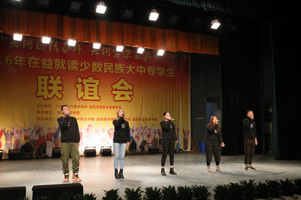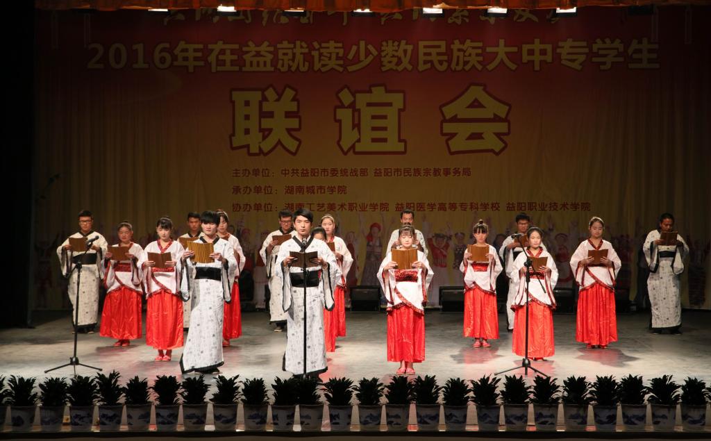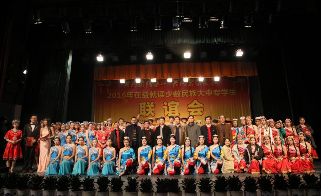 (本网讯)12月18日下午,2016年在益就读少数民族大中专学生联谊会在我校音乐厅隆重举行。联谊会由市委统战部、市民族宗教事务局主办,华体网页版承办,湖南工艺美术职业学院、益阳医学高等专科学校、益阳职业技术学院协办,主题为“共同团结奋斗 共同繁荣发展”。益阳市委宣传部、市委统战部、市民族宗教事务局、市公安局、市教育局、市文体广新局以及四所高校相关负责人出席联谊会。