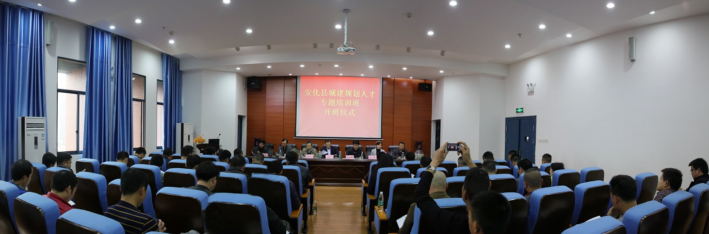 (本网讯)作为我校与安化县开展校地合作的重要项目之一,安化县城建规划人才专题培训班于2月20上午在我校土木楼报告厅正式开班。党委副书记汤放华,副校长夏宏宇,党委委员、组织部长罗新湘和继续教育学院负责人出席开班仪式。安化县委副书记王新宇,县委常委、组织部部长陈飞燕以及该县组织部、干教办相关负责人,该县各级城建规划系统选派的50名学员参加仪式。开班仪式由夏宏宇主持。
