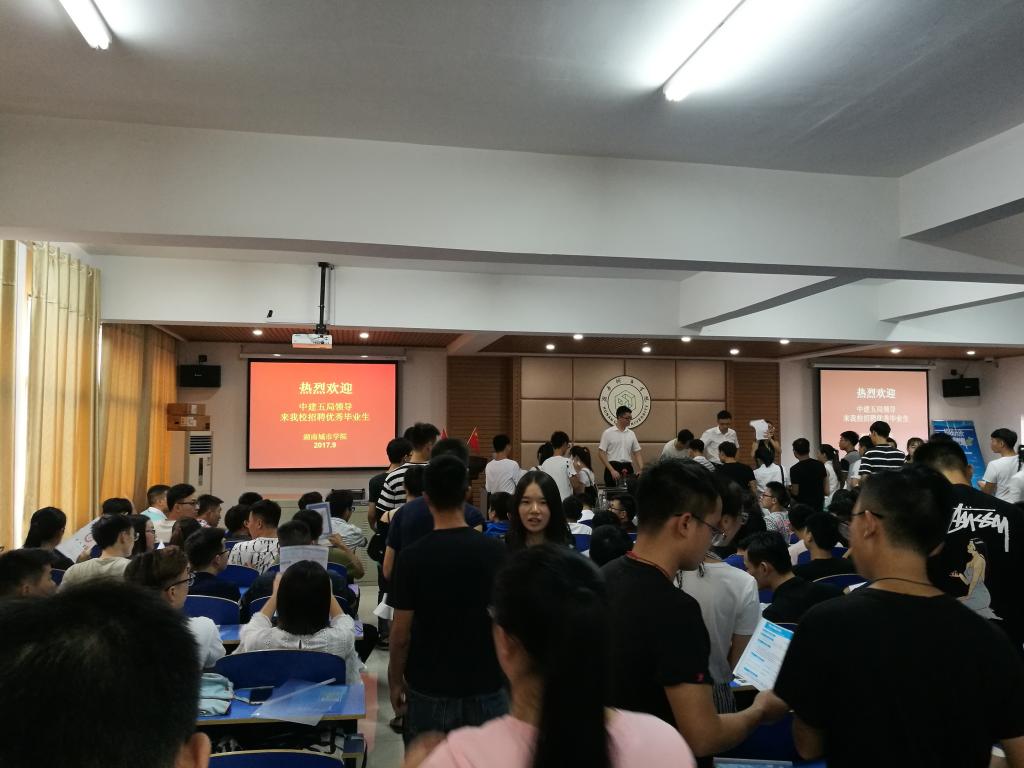 (本网讯)9 月 9日上午,中建五局应邀来我校招聘毕业生,由此拉开我校2018届毕业生校园招聘会帷幕,中建五局也成为进校现场招聘2018届毕业生的第一家企业。