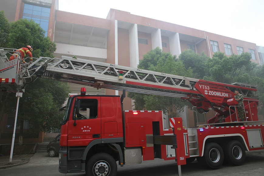 与此同时,益阳市公安消防特警大队消防救援车辆也赶到现场,利用水枪开展灭火作业,并依靠登高消防车对高处被困人员进行营救……