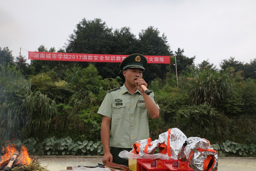 (本网讯)为进一步加强校园消防安全工作,切实提高学生消防安全意识及自救能力。9月21日中午,学校保卫处在湖南省消防协会和益阳市公安消防特警大队大力支持下,组织2017级新生进行了疏散逃生和消防灭火演练。副校长夏宏宇现场指挥演习。