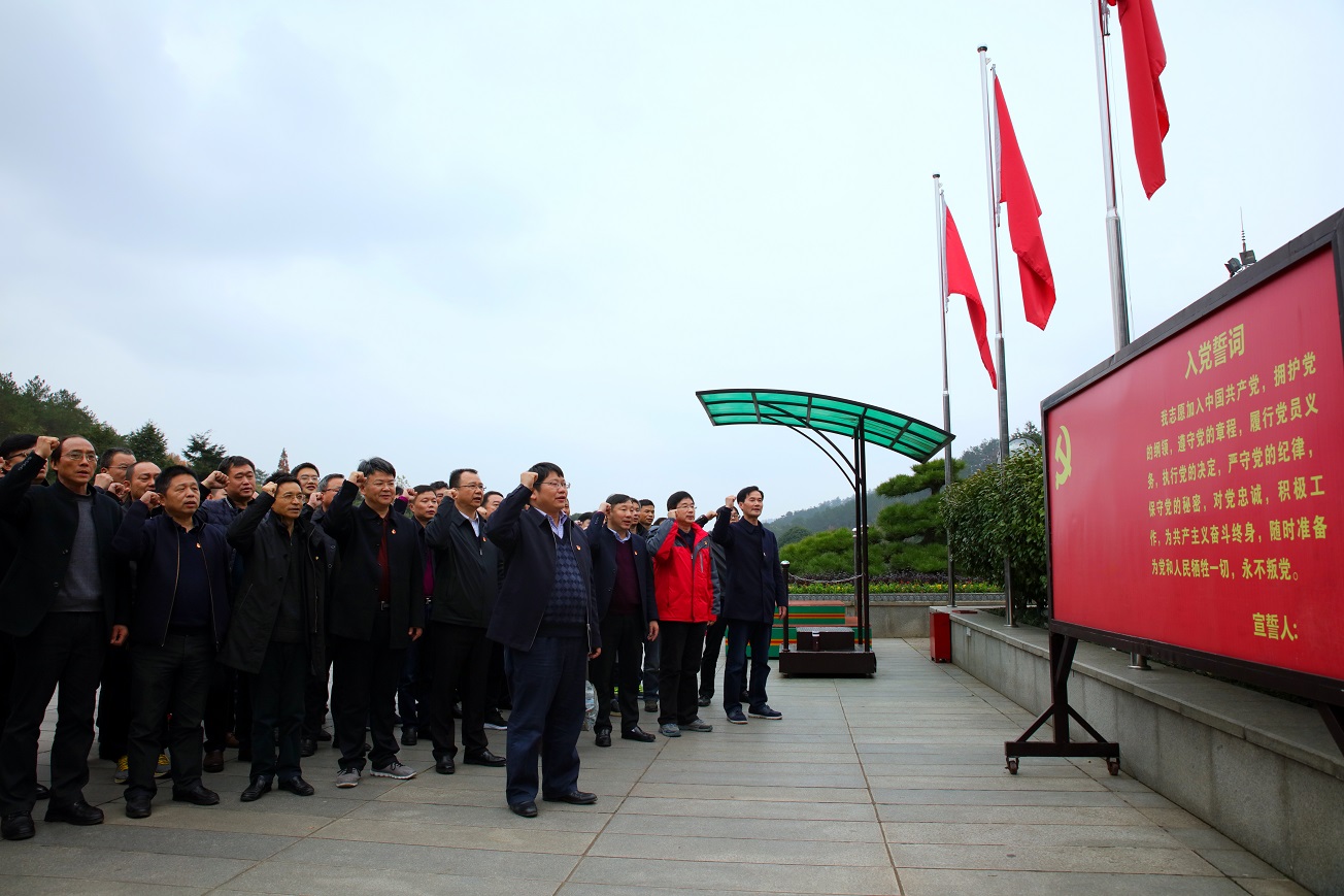 在毛泽东铜像广场,全体党员干部佩戴党徽,集体向毛泽东同志铜像敬献花篮,庄严地向毛泽东铜像鞠躬,以表达对伟人的崇仰与缅怀之情。随后,在党委书记罗成翼领誓下,全体党员干部面对党旗,举起右拳庄严宣誓:“我志愿加入中国共产党,拥护党的纲领,遵守党的章程,履行党员义务,执行党的决定,严守党的纪律,保守党的秘密,对党忠诚,积极工作,为共产主义奋斗终身,随时准备为党和人民牺牲一切,永不叛党。”