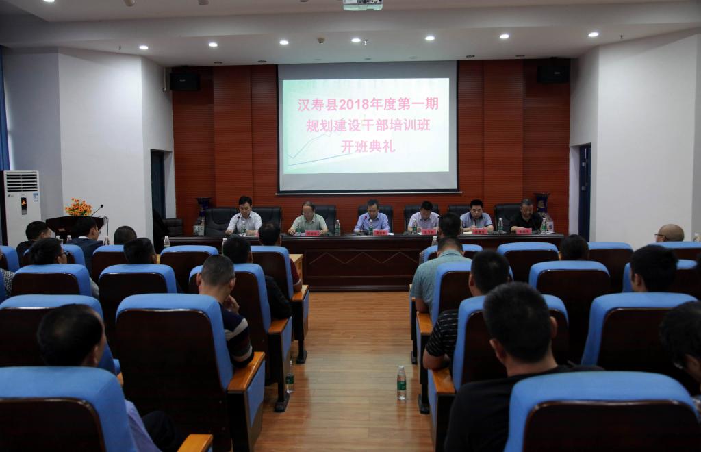 (本网讯)5月22日下午3:00,汉寿县2018年度第一期规划建设干部培训班开班仪式在我校土木楼8楼报告厅举行。副校长夏宏宇,汉寿县副县长宋万林,汉寿县组织部、政府办、住房和城乡建设局相关负责人,我校继续教育学院相关人员以及汉寿县城建规划管理系统42名参训学员参加了开班仪式。