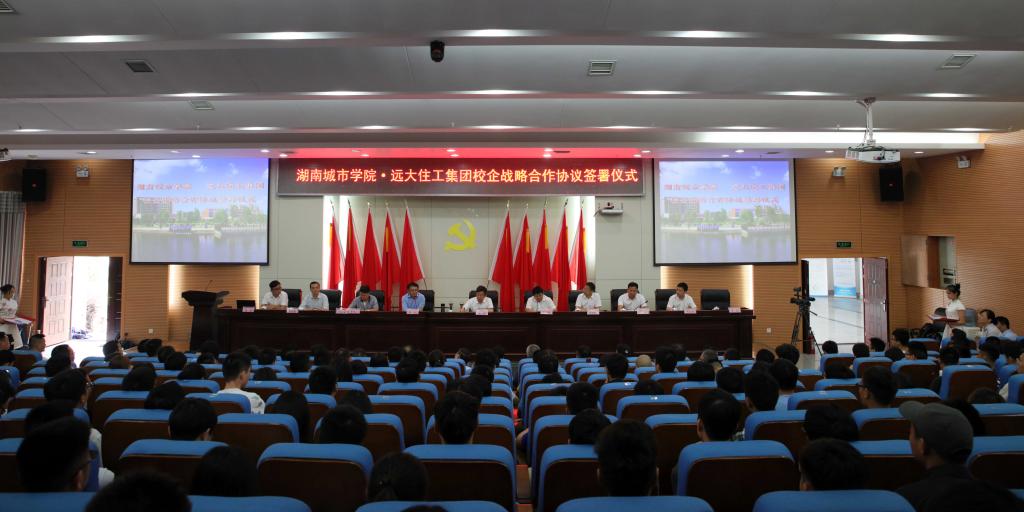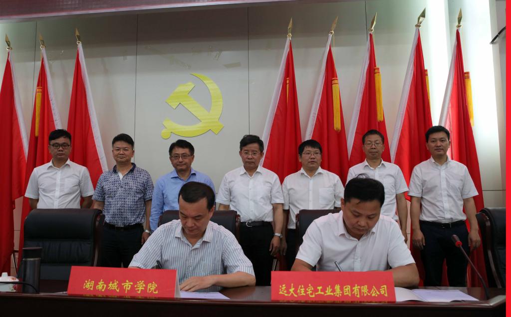 (本网讯)6月12日上午,我校与远大住工集团校企战略合作协议签署仪式在图书馆报告厅隆重举行。益阳市委书记瞿海、副市长胡安邦,远大住工集团董事长张剑、副总裁肖在,学校党委书记罗成翼、党委副书记汤放华、副校长雷存喜出席仪式。仪式由汤放华主持。