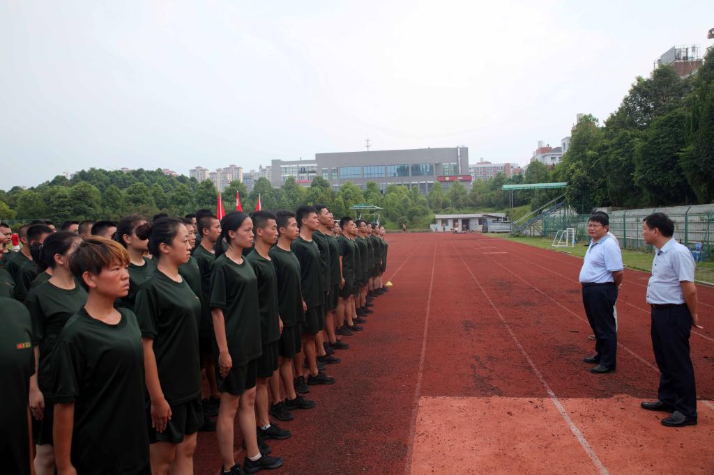(本网讯)2018年8月28日下午,学校党委书记罗成翼在副校长谭献良、学工部、团委负责人陪同下,来到塑胶田径场亲切看望假期中紧张训练的113名2018级学生军训教官,勉励参训学员认真学习习近平新时代中国特色社会主义思想中关于高等教育立德树人、强军思想的论述,科学、文明、规范、专业集训,把军训教导队、民兵预备役分队和学生纠察队打造成一支文明之师、威武之师。
