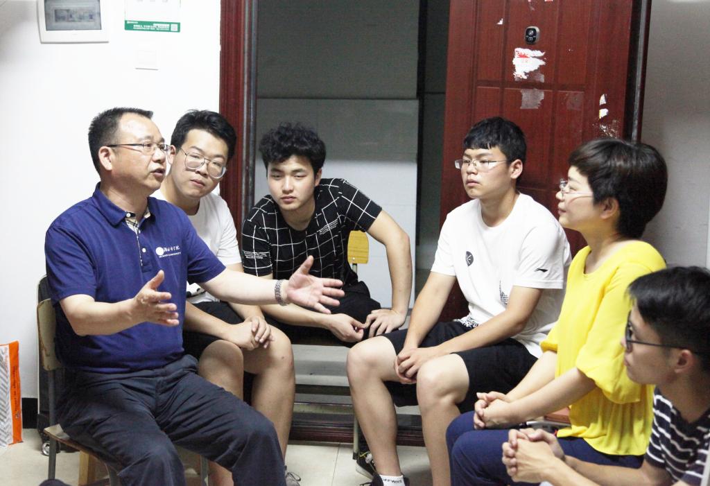 (本网讯)为进一步深入学生、关爱学生、了解学生需求,2019年6月4日晚,校长李建奇,副校长雷存喜,党委委员李斌来到学生寝室,亲切看望了联系寝室的学生。