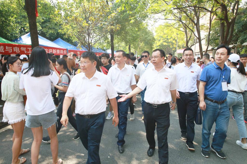(本网讯)又是一年开学季。2019年9月7日,是华体网页版新生入学报到首日,6000余名2019级新生从祖国四面八方汇聚城院校园,在这里开启他们大学求学之旅。党委书记罗成翼,校长李建奇,副校长郑卫民、雷存喜,党委委员李斌在党政办、学生工作部、团委、招生就业处、保卫处、基建与后勤管理处等有关部门负责人陪同下,来到迎新报到现场,看望了远道而来的新生和家长,慰问了迎新工作人员。