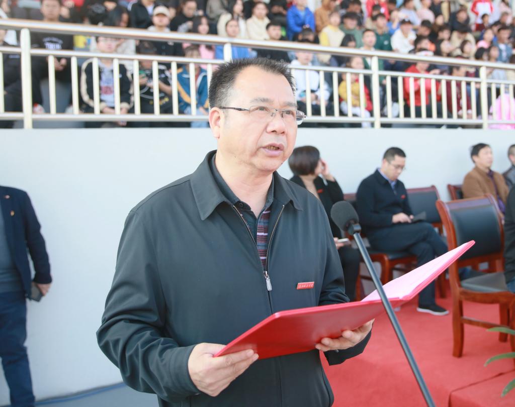 校长李建奇致开幕词,他希望全体师生以此次运动会为契机,将体育锻炼作为一种良好的习惯,将身体健康作为一种人生追求,让体育与快乐同行,运动与生命同在,健身与精彩相伴,弘扬体育精神,涵养体育道德,将体育运动中所蕴含的团队合作、公平竞争、坚韧顽强、拼搏进取等体育精神转化为成长的不竭动力,为推进我校特色鲜明的高水平应用型大学建设贡献自己的力量。