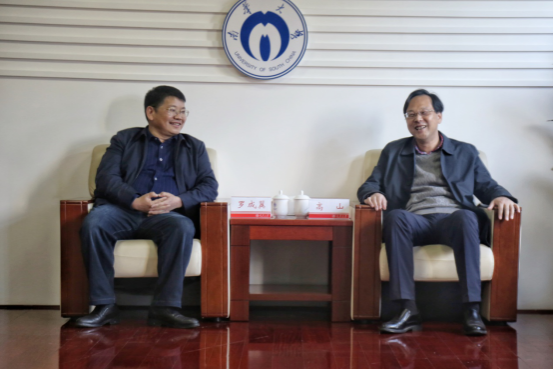 南华大学党委书记高山、党委副书记阳小华、党委委员苏玲、于涛等热情接待了罗书记一行,并就相关问题开展了座谈。高山详细介绍了近年来南华大学改革发展取得的主要成就,重点介绍了学校发展思路、人才政策和机构改革举措等。