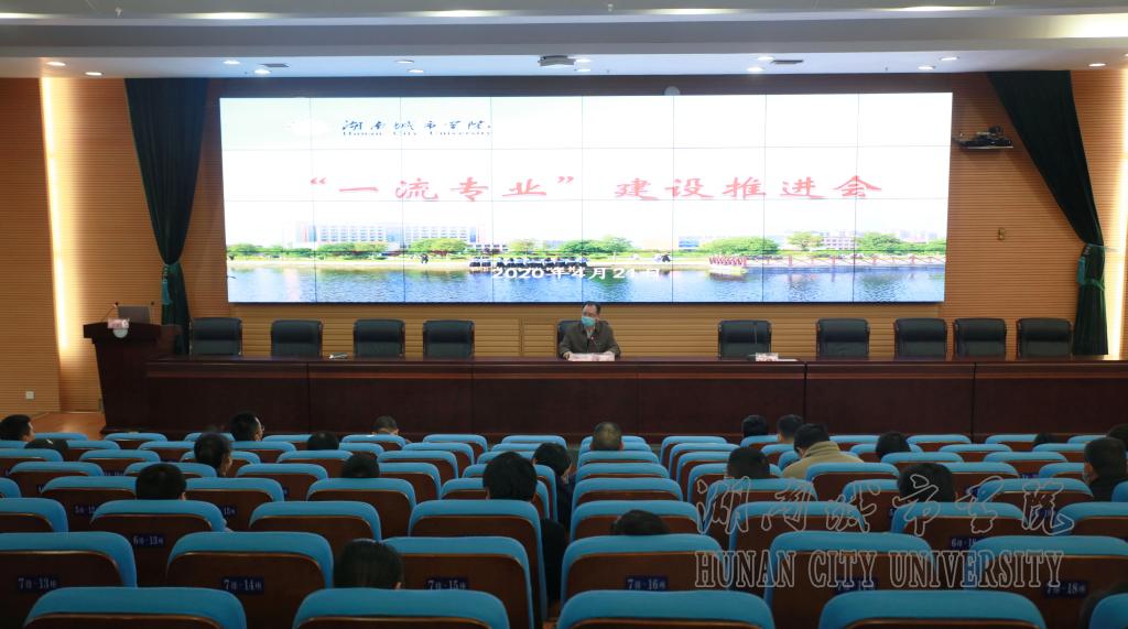 本网讯  2020年4月21日下午,我校在图书馆报告厅召开一流本科专业建设工作推进会。校长李建奇主持会议并讲话,副校长郑卫民,各二级学院院长、分管教学副院长、专业负责人、系(室)主任,教务处、学科建设与发展规划处、以及教学质量监控与评估中心相关负责人参加会议。
