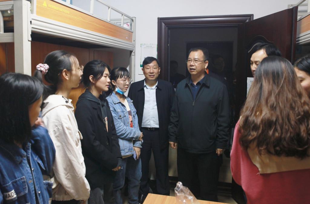 副校长谭献良,党政办、学生工作部、保卫处、基建与后勤管理处等部门负责人陪同检查。