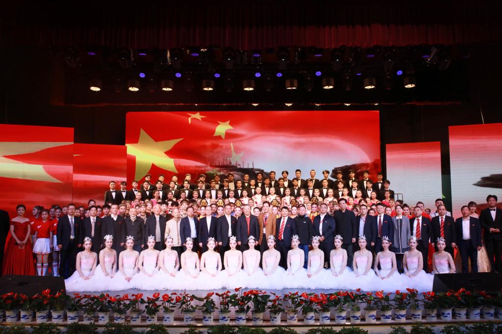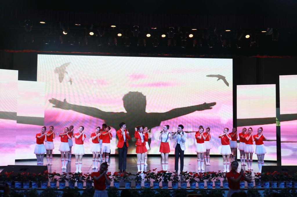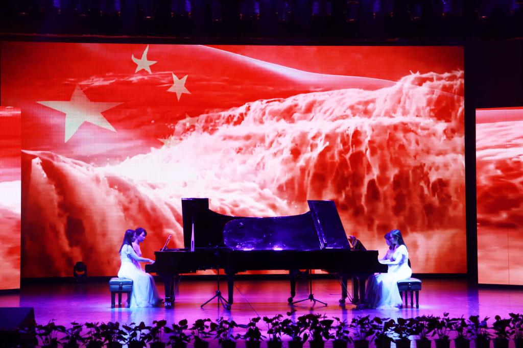 在“欢庆”篇章中,艺术学院学子为观众献上民乐合奏《欢庆校园》和原创舞蹈《花鼓情·薪火赓续》。器乐演奏热烈明快,舞蹈演绎优美动人,令在场观众目不转睛。在“奋斗”篇章中,城院教师代表同艺术学院学子携手华丽出演的钢琴八手联弹、舞蹈《东归雁》及《奋进》,借助黑白琴键的跳跃和风姿绰约的舞姿将城院师生对学校的深情展现得淋漓尽致。大学生艺术团表演的快板书《新时代·新城院》全面贯彻城院“三全育人”综合改革思想,展现了年轻一代在新时代浪潮中勇挑重任的使命担当,击节铿锵的演唱给观众留下了深刻印象。“向往”篇章中的歌舞《我们都是追梦人》、歌曲《向往》以及舞蹈《额尔古纳河》唱响了城院音、舞出了城院魂,表达出城院人“争做城院骄傲”的追梦态度。最后,演出在《我的祖国》和《歌唱祖国》大合唱中圆满落下帷幕。