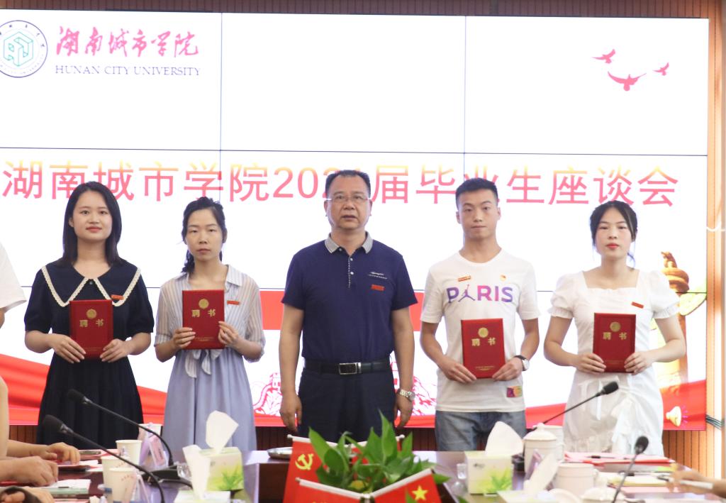 会上,15名毕业生代表踊跃发言。人文学院李珺被中国人民大学法学院录取,她由衷表达了对学校严抓学风的认同。市政与测绘工程学院张巍、信息与电子工程学院邓琪、理学院叶雨辰、机械与电气工程学院罗方宏、体育学院尹霞、国际教育学院阳敏娇也考上了中南大学、湖南大学、湖北大学等重点大学的研究生,他们表达了不负学校培养、继续努力深造的决心。土木工程学院赵文博、管理学院谭文灵飞、材料与化学工程学院王栋林在中建一局、四局、五局等央企如愿就业,他们一致表示得益于学校“一二三四”应用型人才培养模式和良好的毕业生就业举措。管理学院群培是一名藏族学生,报考了西藏公务员正等待被录取的他,饱含深情地说:“我感恩党和国家的政策关怀,让我从一名喜马拉雅山下的牧民,成长为合格的大学生。也希望有更多大学生到祖国和人民最需要的地方去。”艺术学院的张钊钊也正等待被西部计划志愿者录取,她表达了为西部建设助力的美好憧憬。建筑与城市规划学院毕业生钱佳考上了浙江省兰溪市公务员,即将实现学成归来建设家乡的梦想。曾任华体网页版习近平新时代中国特色社会主义思想读书会副会长的许韵瑜是一名中共党员,她考上了益阳乡镇的选调生,社团负责人的任职经历让她感受到了将专业知识学以致用的成就感和团队合作的意义。曾任校学生会主席的张继文,即将去往中联重工就业,他感慨学校近年来在基础设施建设、校园文化建设和人才培养质量上的日新月异,祝愿学校早日建成湖南城市大学。毕业生代表们纷纷表示,将永记“品学兼修 知行统一”的校训,永怀城院情,永为城院人,努力做到“今朝我以城院为荣,明日城院以我为荣”。