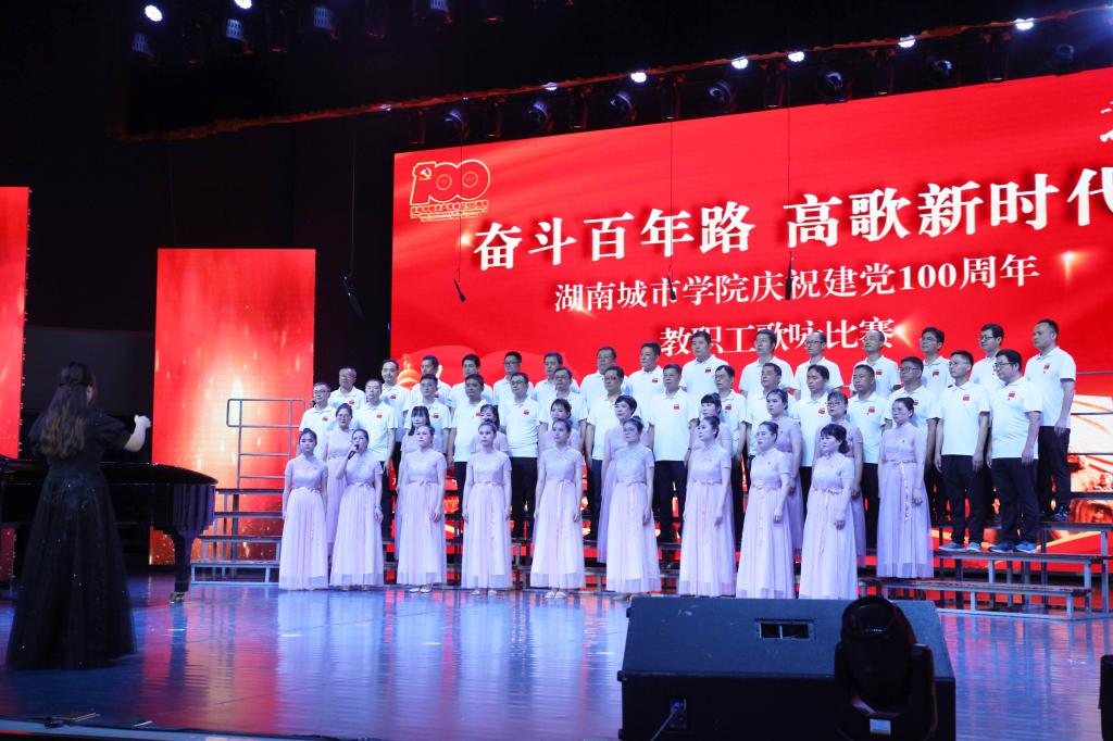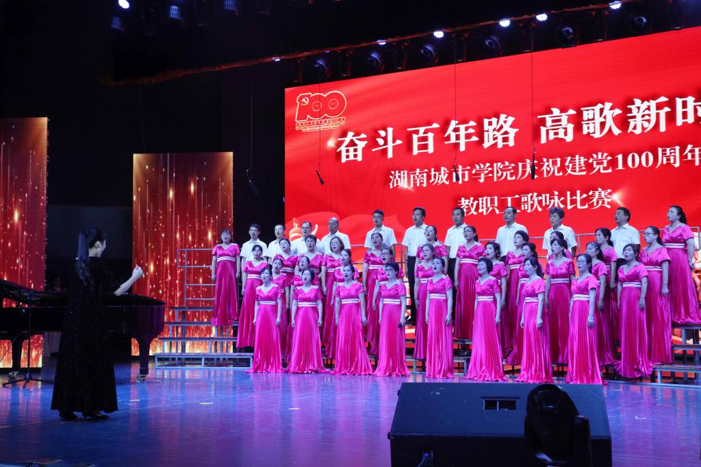 本网讯(通讯员 周敏)为庆祝中国共产党成立100周年,激发广大教职工爱党爱国、同心奋进的热情,2021年7月1日晚,我校“奋斗百年路 高歌新时代”庆祝建党100周年教职工歌咏比赛在音乐厅举行。全体校领导出席,16支合唱队共700余名教职工参加比赛。