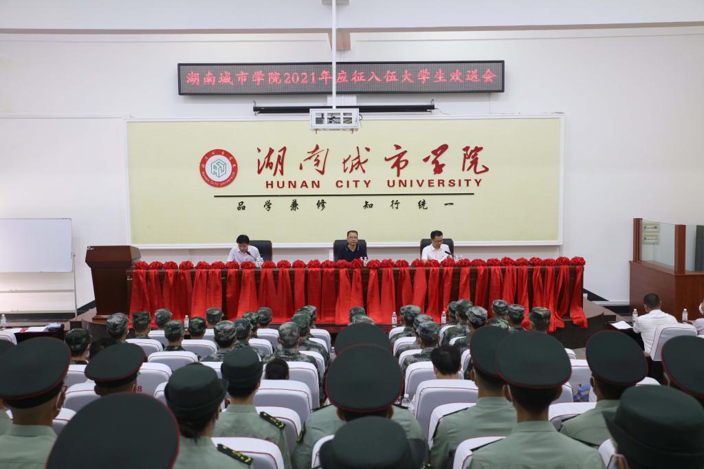 “人民军队是锻炼和培养人才的大学校、大熔炉,能够以大学生的身份成为这个光荣战斗集体的一员,这是青春人生里最值得标榜的事情,我为你们骄傲,为你们自豪!”党委书记李建奇对入伍学生提出四点希望:一是要志存高远。要厚植爱国之情,树立报国之志,全面增强保家卫国的本领,努力把自己培养成“有灵魂、有本事、有血性、有品德”的新一代革命军人;二是要严守纪律。要珍惜军人荣誉,在艰苦的环境中摔打磨练,把自己打造成为钢铁长城的一块坚强柱石;三是要苦练本领。要充分发挥大学生优势,增长才干,努力把自己培养成军队现代化建设的优秀人才,实现个人成长与军队发展同频共振;四是要不忘母校。要始终牢记母校“品学兼修、知行统一”的校训,砥砺奋进,追求卓越,努力把自己培养成彰显城院精神风貌的好战士、亲友骄傲为荣的好儿郎,以实际行动为母校争光,为家乡添彩。