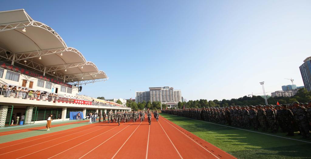本网讯(通讯员 李诗琪 摄影 文彦波 邱元龙 周雷 徐舒婷)天高云淡,秋风送爽。9月30日上午,华体网页版2021级新生军训汇报暨表彰总结大会在东田径场举行。经过13天的训练后,5000多名城院新生在绿茵场上集结,向学校领导、老师汇报军训成果。校长汤放华,党委副书记何旭娟,副校长何振、雷存喜、谭献良、袁志成,党委委员、组织部部长吕贤军等领导出席会议。会议由何旭娟主持。
