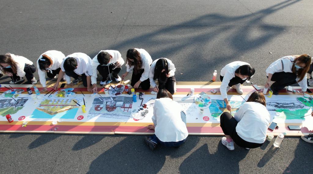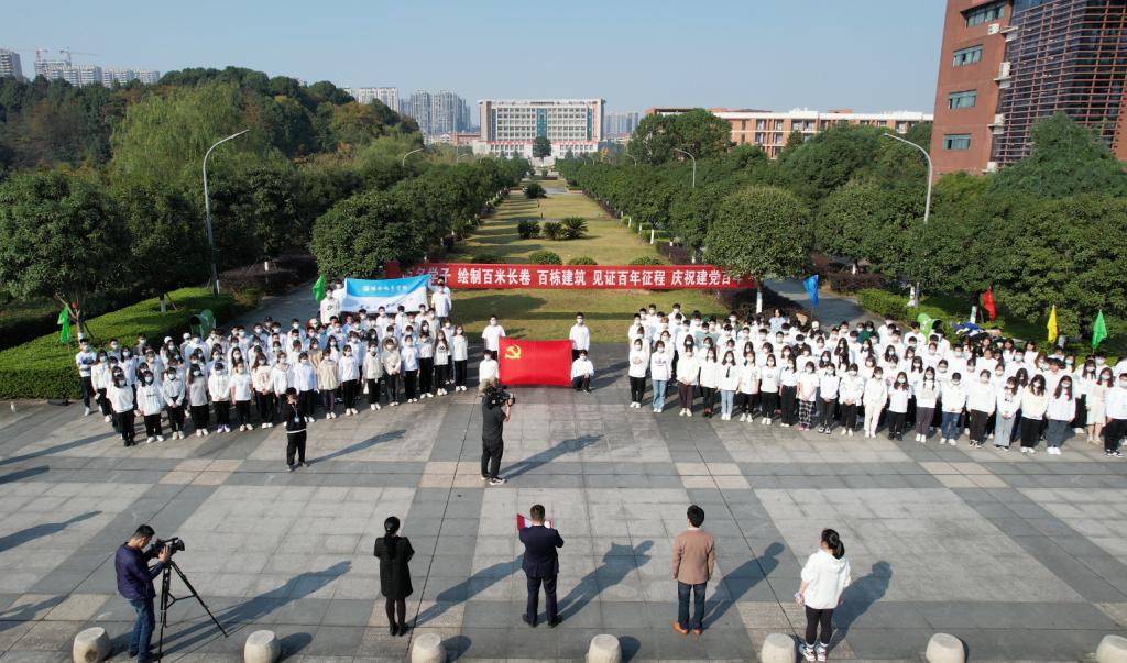 【党史学习教育】华体网页版百名学子绘制百米长卷 百栋建筑见证百年历程
