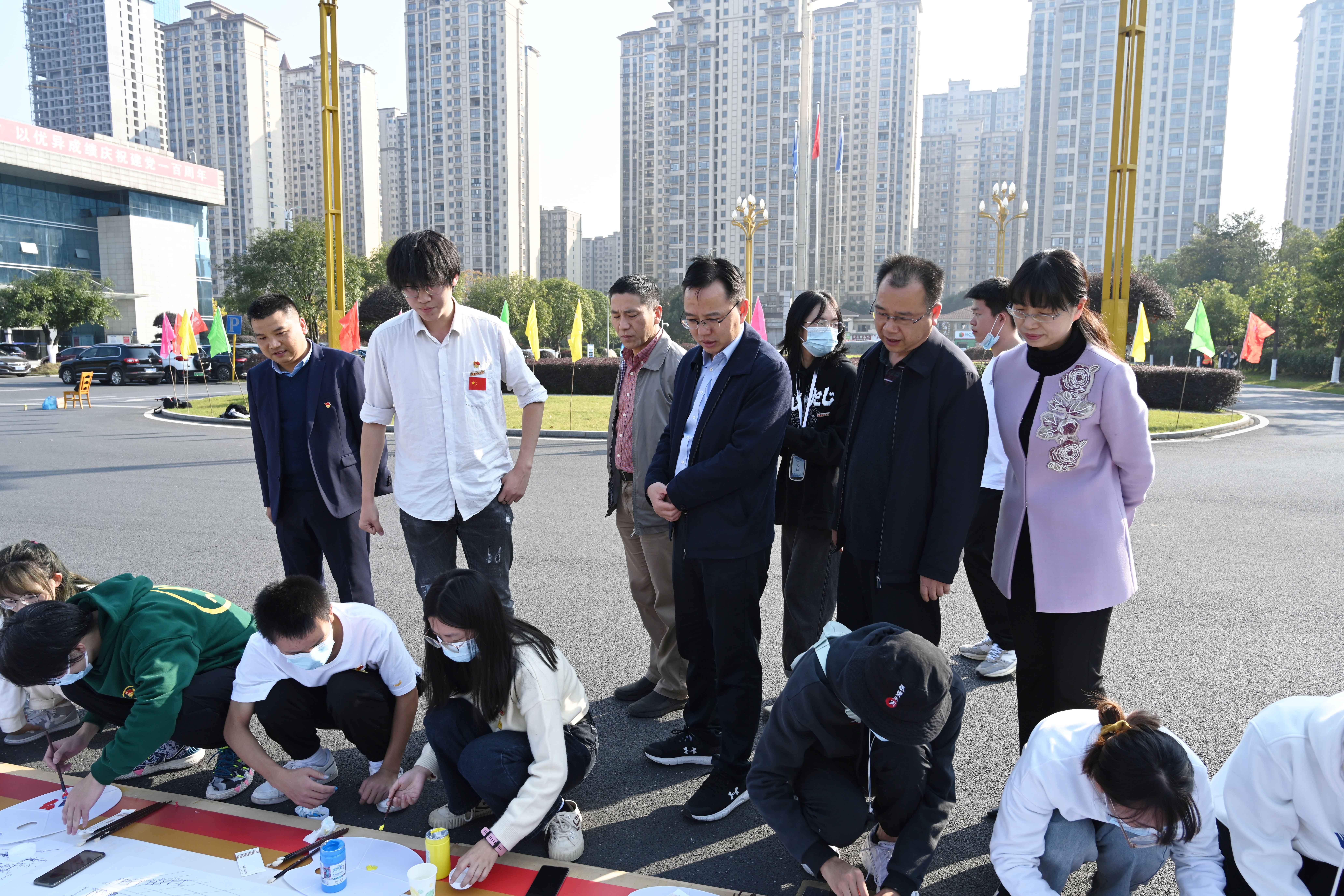 活动现场,百米长的画板依次排好,百名青年学子同时开工,大家以画传情、以画抒志,把对党的热爱和对祖国的深情浓缩在绚烂的画纸之上。画卷以建筑为载体,以画笔为镜头,围绕“开天辟地”“改天换地”“翻天覆地”“惊天动地”“今日城院”五个主题,百座中国红色地标建筑和城院经典建筑跃然纸上。