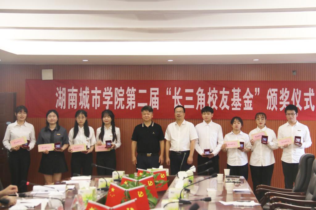 本网讯(通讯员 杨昌霞)2022年6月17日上午,我校第二届“长三角校友基金”颁奖仪式举行。本次颁奖仪式采取线上与线下相结合的形式进行,校长汤放华,副校长夏宏宇、袁志成,学生工作部、校友办负责人,各二级学院分管学生工作的副书记以及44位即将赴长三角攻读硕士研究生的同学参加线下主会场颁奖仪式;上海、浙江、江苏三地的近20名校友们参加线上会议。会议由夏宏宇主持。