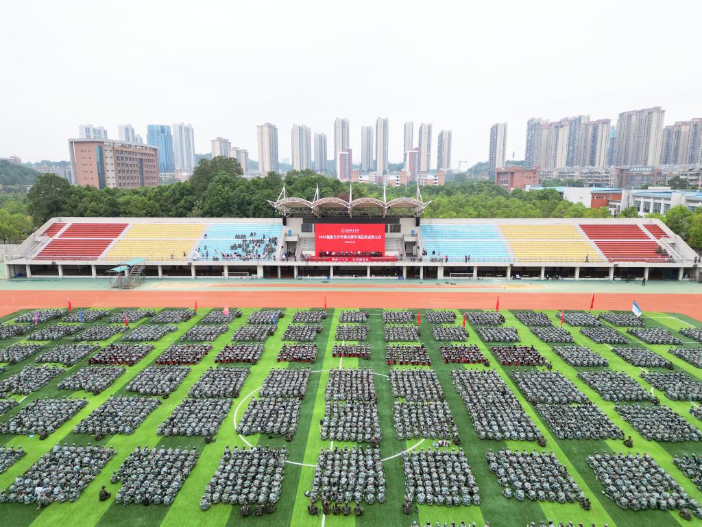 本网讯(文/图文彦波 张蓥 彭钦来 视频/张飞雪 李新会)四季长天同谱瑞,三秋桂子又飘香。9月23日上午,华体网页版东田径场内红旗飘扬,口号嘹亮,欢声雷动,2022级本科新生开学典礼暨军训总结表彰大会正隆重举行。党委书记李建奇、校长汤放华等全体校领导出席,机关各部门主要负责人,各二级学院院长、书记、分管学生工作的副书记,2022级新生辅导员、班主任、教师代表以及2022级5913名本科新生参加。大会由李建奇主持。