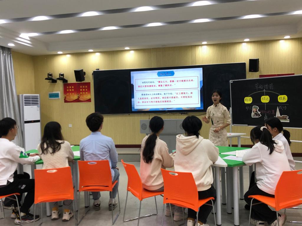 本次比赛由湖南省教育厅主办,采用线上线下相结合方式举办,由片段教学、教学板书两部分组成。大赛组委会在线上公布题目,选手根据课题完成10分钟片段教学,穿插黑板书写粉笔字进行教学板书,教学现场进行视频实录。选手须在规定时间内将视频上传提交,由评委在线评审。我校选手们以严谨的教学思路,生动的语言表达、亲切的教资教态、清晰的板书设计展现其扎实的基础知识和专业的教学风范。