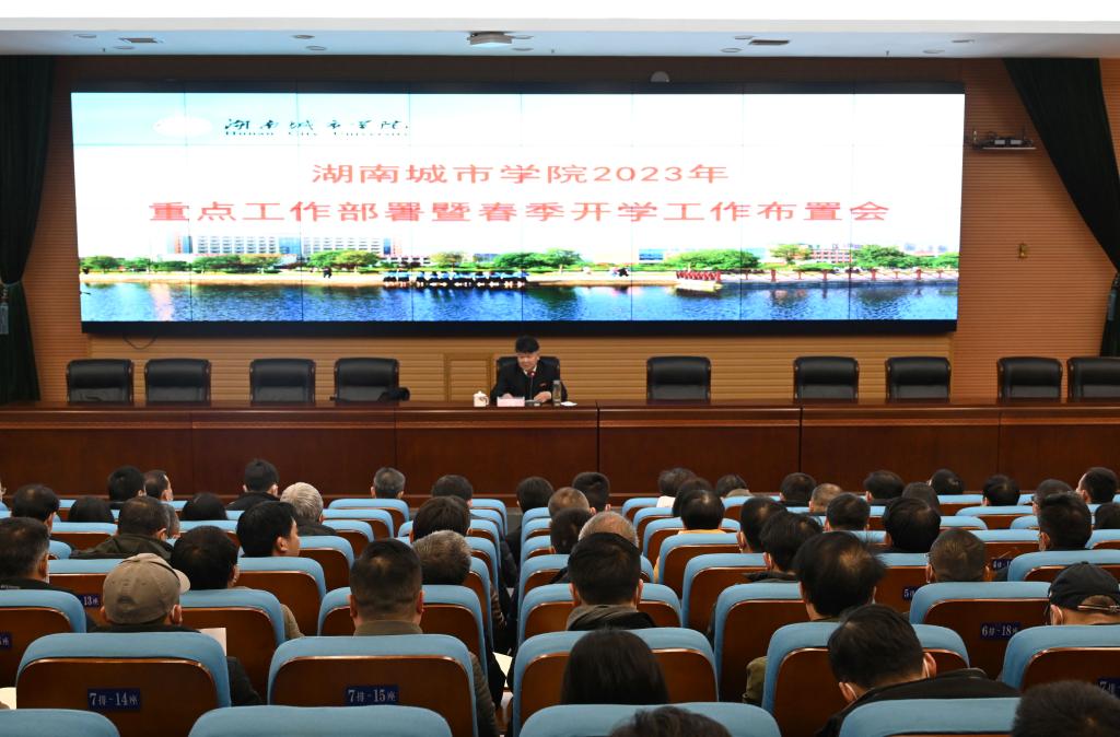 本网讯(记者 文彦波)2月12日上午,我校在图书馆报告厅召开2023年重点工作部署暨开学工作布置会,总结成绩经验,研判形势问题,安排部署2023年工作,为打开学校事业发展新天地统一思想、深化认识、提振精神、凝聚力量。全体校领导,副处级以上干部,学科、专业、基地平台负责人和首席专家参加会议。