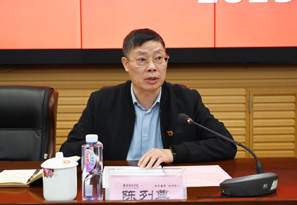 陈列尊从“坚持‘三个聚焦’,扛牢监督专责;坚持严的基调,持续正风肃纪;强化风险防控,建设清廉校园;加强自身建设,锻造执纪铁军;落实改革要求,勇于先行先试”五个方面系统总结了2022年学校纪检监察工作,从“聚焦‘两个维护’,强化政治监督;聚焦师生利益,做实日常监督;聚焦清廉校园,推进党风廉政建设;聚焦重点领域,强化正风肃纪反腐;聚焦能力提升,加强队伍建设”等方面对2023年重点任务进行了部署。