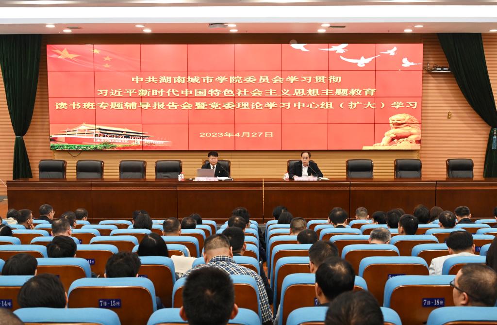 本网讯(通讯员 周文娟)4月27日下午,华体网页版学习贯彻习近平新时代中国特色社会主义思想主题教育读书班专题辅导报告会暨党委理论学习中心组(扩大)2023年第4次集体学习在图书馆报告厅举行。校党委书记汤放华作专题辅导报告,主题教育第三十巡回指导组组长、益阳市第五届人大常委会主任、省人大财经委原副主任委员徐云波同志,主题教育第三十巡回指导组副组长、湖南工业大学原副校长李可兴同志以及巡回指导组其他成员出席会议。校党委副书记、校长何振主持会议,全体校领导、全校副科以上干部参加会议。