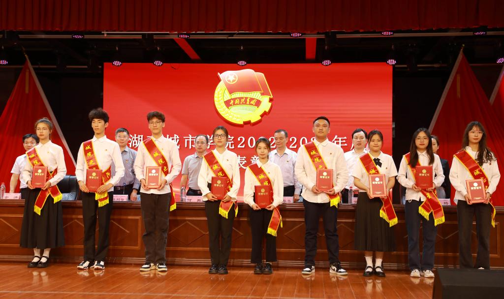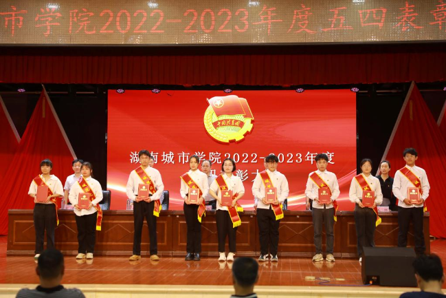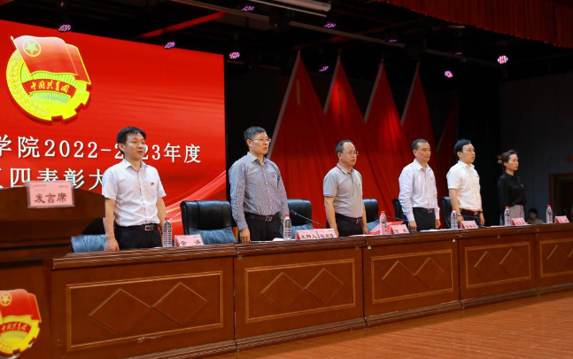在激昂的国歌声中,表彰大会拉开序幕。副校长雷存喜宣读了《关于表彰华体网页版第二届“活力团支部”和“城院之星”的决定》《关于表彰华体网页版2022年度共青团工作先进集体和优秀个人的决定》。据悉,此次学校共评出“五四红旗团总支”4个,“优秀团支部”86个,“活力团支部”14个,“城院之星”18人,“优秀教师团干部”4人,“优秀共青团干部”273人,“优秀共青团员”376人。