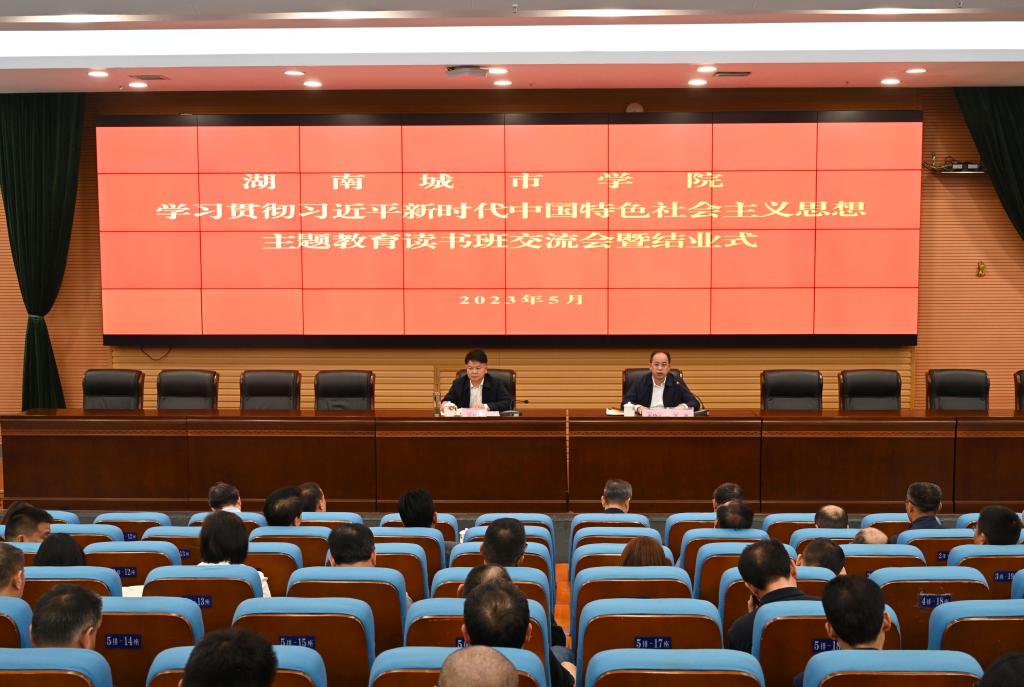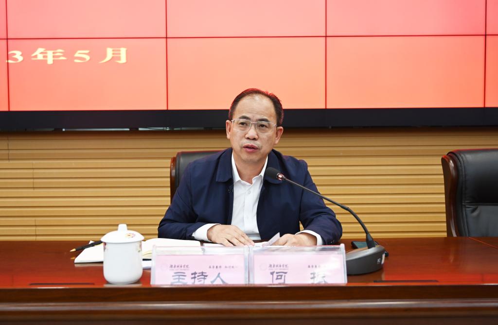 本网讯(记者 文彦波)5月8日,华体网页版学习贯彻习近平新时代中国特色社会主义思想主题教育读书班交流会暨结业式在图书馆报告厅举行。校党委书记汤放华在会上作总结讲话,党委副书记、校长何振主持,在家校领导夏宏宇、雷存喜、陈列尊、吕贤军以及读书班学员参加会议。