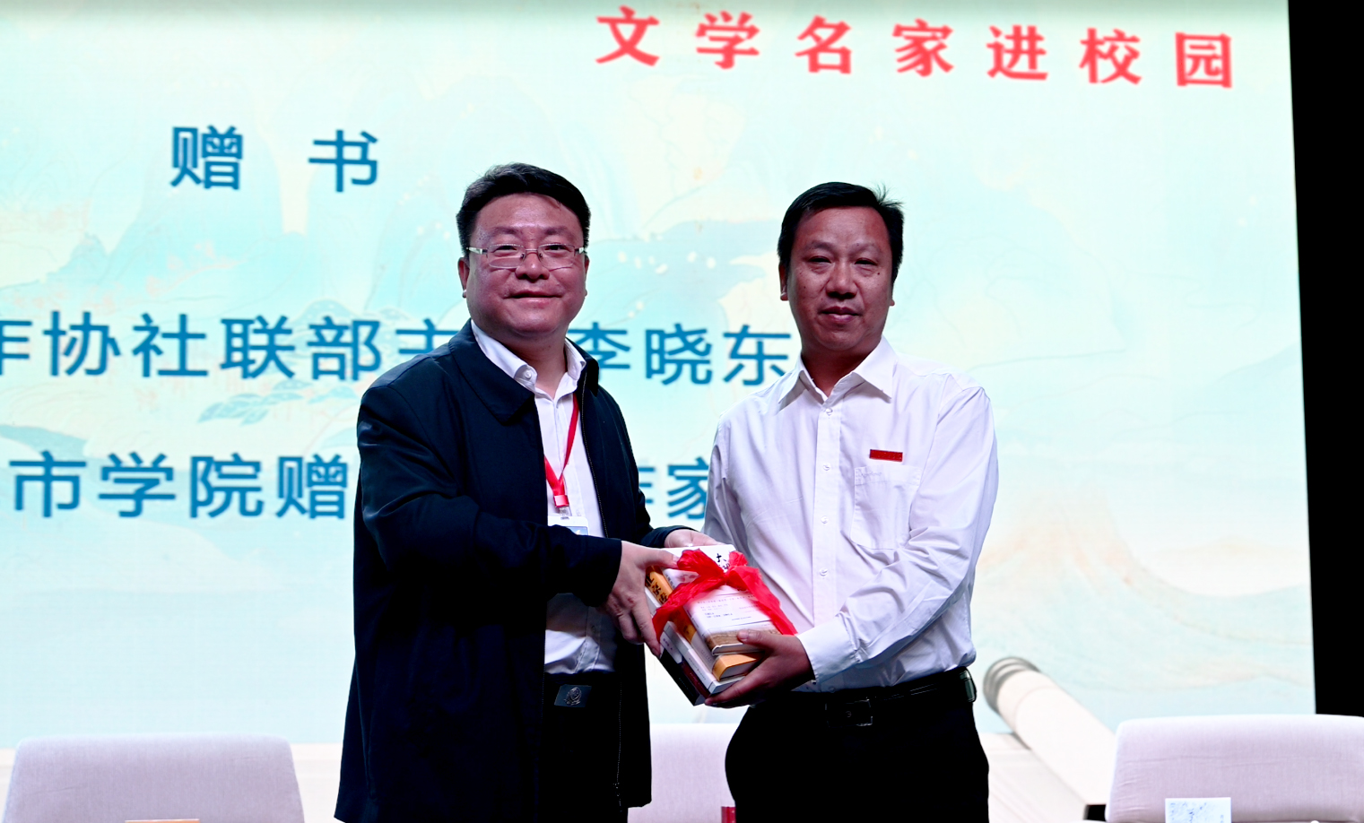 接下来,举行了受邀作家向华体网页版赠书仪式,学校图书馆馆长莫连光代表学校接受了赠书。