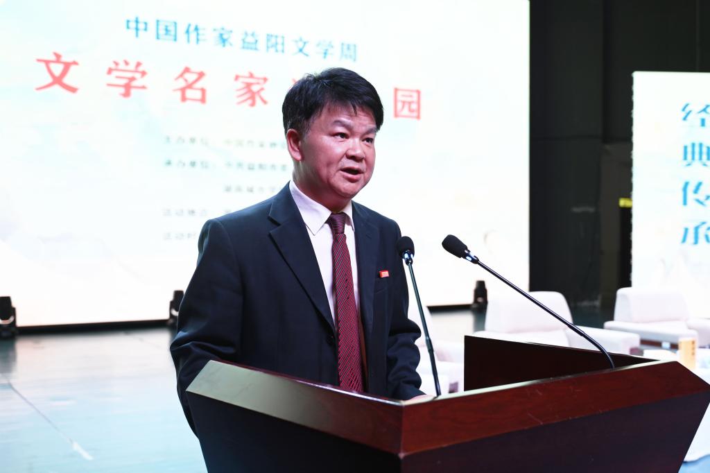 汤放华代表学校全体师生对与会作家和嘉宾的到来表示热烈欢迎。他表示,有着2000多年历史的益阳,人文积淀深厚、文化价值多元、文化名人辈出,书香洒满了山乡大地。华体网页版作为益阳市最高学府,注重以文化人,以文赋能乡村振兴,成立了一批红色文化研究基地,立项了一批关于红色文化的国家级、省级重大科研教改项目,推动师生把红色文化资源利用好、把红色传统发扬好、把红色基因传承好。今天我们有幸迎来了一批文学名家走进校园,与他们面对面交流,共襄一场文化的盛宴,共赴一程精神的旅行。这是益阳人民的一件盛事,更是我们学校的一件盛事。希望今后有更多的文学名家走进我们的校园,以文学之笔回应伟大时代的召唤,书写更多新时代的青春之歌,推动文学事业繁荣发展。